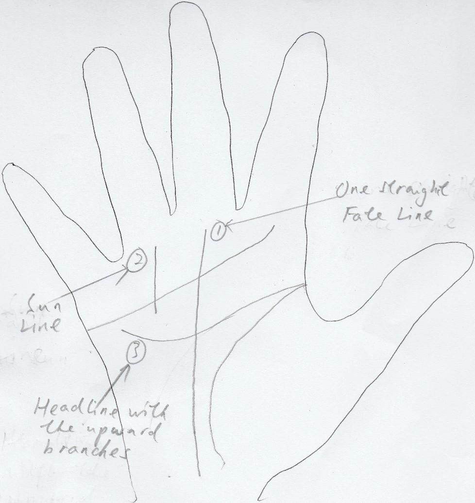 - One Straight Fate Line Which Extends to the base of Saturn Finger