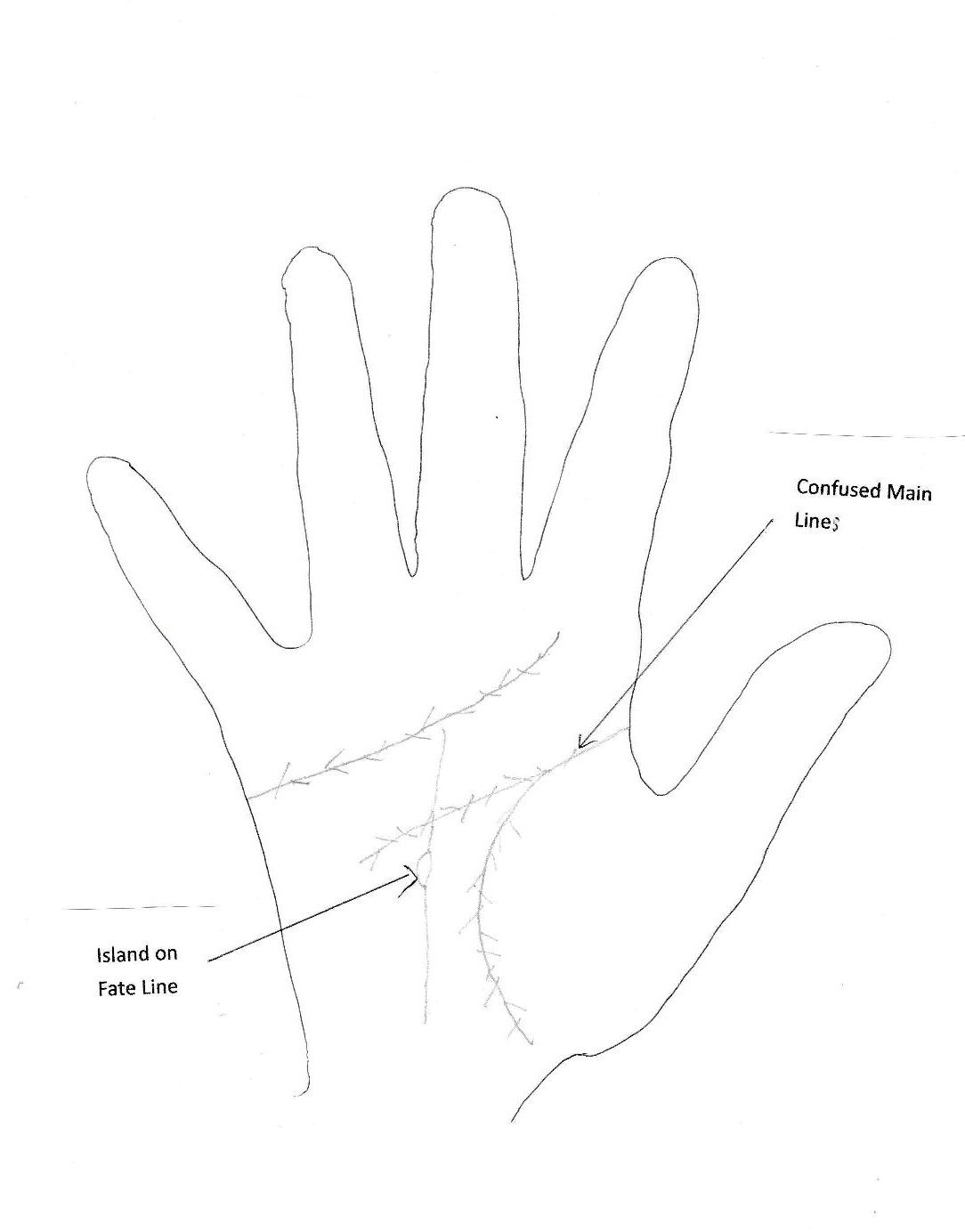 It is the handprint that shows you have many troubles in your career. It represents that you have many disputes in the human relationships. It seems that the disputes are happening again and again. It makes you anxious. You can change your fate by changing the living environment. Apart from that, you can get the result by arranging your room or taking a trip.