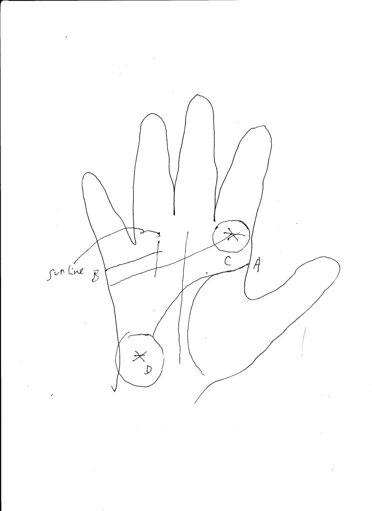 If the starting points of the headline and the lifeline overlap, the marriage of the owner will be very good, especially if the marriage line that is shown in line B in the picture is long and intersect with the sunline, the life of the owner before the marriage and that of after marriage will be very different.