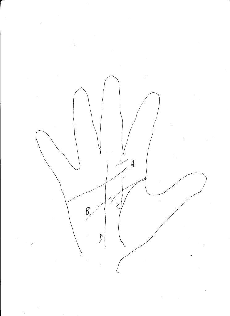 If the fate line starts from the waist and raises straightly, just like that of D, it represents the strong strength of the wrist and the arm. If this kind of people is the baseball player, they are the strong strike power. If the fate line is inconsistent, it represents that this kind of people has bad balance in the upper part of body and the lower part of body. They are easy to get hurt.
